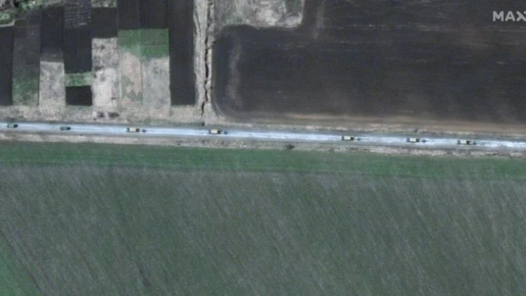 ABD merkezli uydu görüntüleme şirketi MAXAR, Ukrayna’nın Velykyi Burluk yerleşim yerinden Harkov bölgesine doğru hareket eden 13 kilometrelik Rus konvoyuna ait fotoğraflar paylaştı.