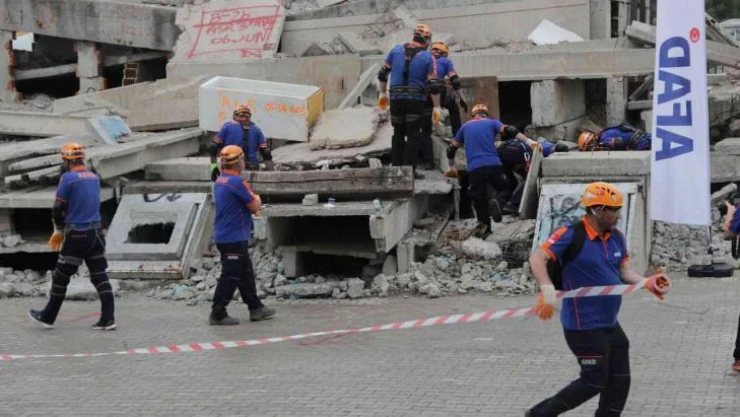 AFAD İzmir yerleşkesinin eğitim alanında yapılan tatbikatta ise senaryo gereği, merkez üssü İzmir’in Kemalpaşa ilçesi olan 5.9’luk bir deprem gerçekleşti. Depremin ardından bölgeye sevk edilen ekipler, havadan ve karadan alan taraması yaparak bazı binaların ve ağılların yıkıldığını tespit etti. Seviye 2’den afet çalışmalarına başlanması talimatının ardından 112’ye gelen ihbarda yıkılan ağıllardan birinde küçükbaş hayvanlarla birlikte sahibinin göçük altında kaldığı belirlendi. Harekete geçen ekipler, 1 kuzu ile sahibini göçükten kurtarırken, senaryo gereği yıkılan diğer binadan bir köpek kurtarıldı.