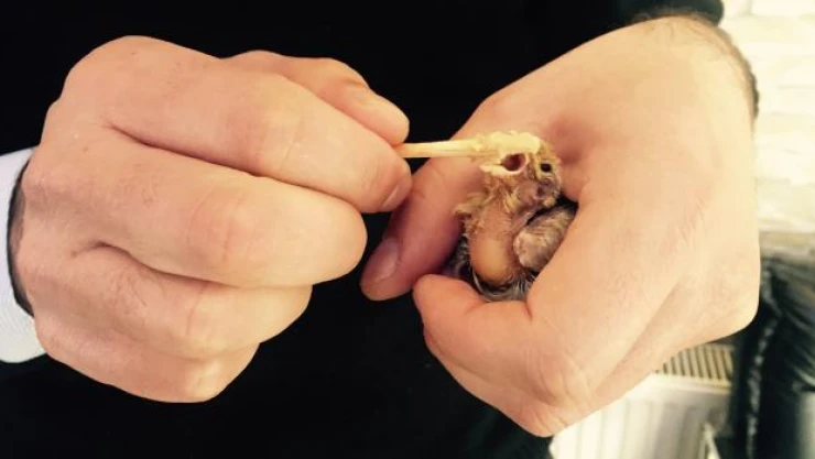 - Annesi ölen kanaryayı bebe bisküvisiyle besliyor