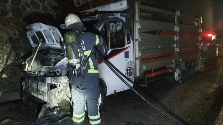 Arı kovanı yüklü kamyonet alev alev yandı, arılar son anda kurtarıldı