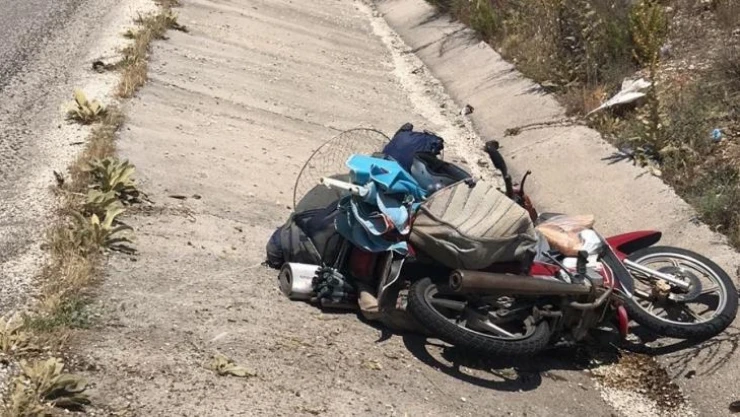 Manisa’nın Salihli ilçesinde arka tekerinin patlaması sonucu yoldan çıkarak şarampole devrilen motosikletin sürücüsü ölümden döndü.