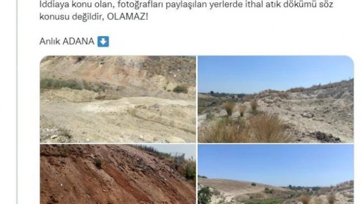 “Eski görüntülerle, bayatlamış iddialarla ısıtıp ısıtıp aynı konuyu gündeme getiriyorlar. İddiaya konu olan, fotoğrafları paylaşılan yerlerde ithal atık dökümü söz konusu değildir, olamaz. Anlık Adana. Anlamayanlara, anlamak istemeyenlere tane tane bir kez daha söylüyoruz. Çöp değil atık alıyoruz. Çünkü geri dönüştürüyoruz. Geri dönüşüme uygun olmayan atıkları asla ithal etmiyoruz. Çünkü yasakladık.”