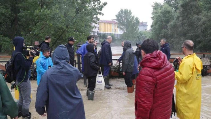 Bölgede bugün metrekareye 20-50 kilogram civarında yağmur beklendiğini de kaydeden Soylu, "Burada tüm iş makineleri, arama kurtarma ekipleri ve yerel destek ekipleriyle beraber mücadele devam ediyor. Dükkanları da gezdik. Yapılan uyarılarla herkes sudan etkilenecek malzemesini ya bir yere kaldırmış ya da üst katlara çıkarmış. Bu açıdan tedbirler zamanında alındı. Valiler, kaymakamlar, DSİ, belediye başkanları ve Karayolları başta olmak üzere herkes işinin başında. Birkaç köprü gitti. Özellikle yukarıda Şarköy’ün köprüsü var, orası gitti. Türk Silahlı Kuvvetleri’nden istedik, oraya bir köprü gelecek ve onu oraya koyacağız. Yine o köyle bir ulaşım yoktu, gece o da temin edildi. Biraz sonra da hava müsait olduğu zaman helikopterlerle de oraya birtakım desteklerde bulunulabilecek. Kozcağız’da yapımı süren barajın hattını besleyen tarafta ciddi akıntı var. Yağmur sularının baskısının azalmasının ardından burada da akıntının yavaşlayabileceğini düşünüyoruz. Burada set oluşturan yığınakların, belediye ve ilgili ekiplerce toparlanmaya çalışıyor” diye konuştu.