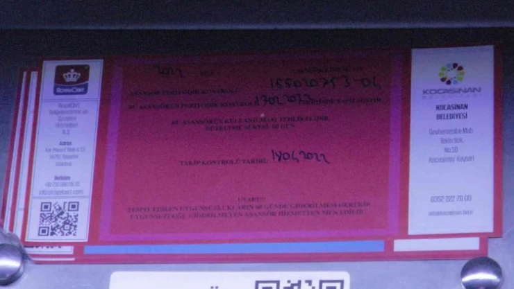 Asansörlerin bakımlarına göre etiketlendiğini söyleyen Makine Mühendisleri Odası Kayseri Şube Başkanı Süleyman Varol, “Asansörlerin yıllık periyodik bakım ve kontrolleri birbirinden farklı. Asansörlerin periyodik bakımlarının yetkili asansör firmaları tarafından her ay düzenli olarak yapılması gerekmektedir. Burada asansör yönetmeliğini belirlediği bazı durumlar var. Bu yönetmelikler çerçevesinde asansörlerin aylık bakımları yapılmalı. Bunun haricinde de asansörlerin yıllık periyodik kontrolleri her yıl A tipi muayene kuruluşunca yapılmalıdır. Burada çeşitli etiketlerle asansör etiketlendirilir. Örneğin kırmızı bir etiket güvensiz bir asansörü gösterir. Sarı etiket kusurlu olduğunu gösterir. Mavi etiket hafif kusurlu şekilde ve kullanılabilir anlamı taşır ve yeşil etiket de tamamen uygun bir asansör olduğunu gösterir” dedi.
