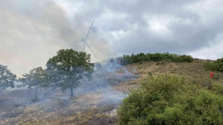 Balıkesir'in Karesi ilçesi Tatlıpınar Mahallesi'nde otluk ve meşelik alanda bilinmeyen bir nedenden dolayı yangın çıktı.