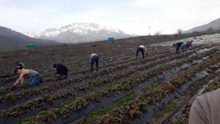 Batman'da yüzlerce ailenin geçim kaynağı olan çilek üretimi için kolları sıvayan üreticiler, tarlalardaki hummalı budama ve temizleme çalışmalarına başladı.