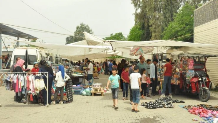 Şanlıurfa'nın Ceylanpınar ilçesinde bayram alışverişi pazarcıların yüzünü güldürdü.