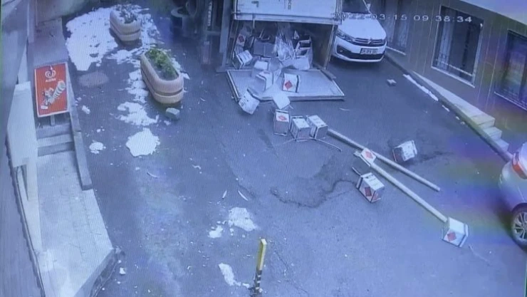 Beyoğlu'nda tehlikeli ve yanıcı madde yüklü kamyonet yokuşta duran aracı beklediği esnada kaymaya başladı. Taşlara ve ağaca çarpan kamyonet devrilerek yan yatarken, sürücü kazadan yara almadan kurtuldu. Faciadan dönülen anlar kameralara yansırken, kazanın şokunu yaşayan sürücü yere çöküp uzun süre kamyonetine baktı.