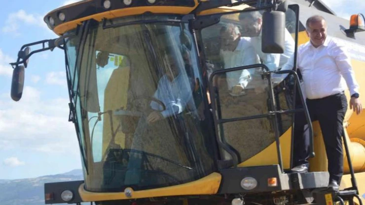 Binali Yıldırım biçerdöverle buğday hasadı yaptı