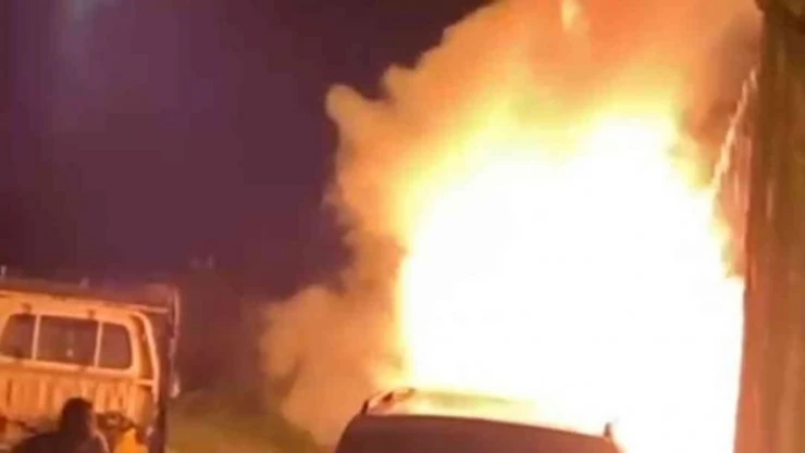 Bursa’da park halindeki hafif ticari araç alev alev yandı. O anlar kameraya yansıdı.