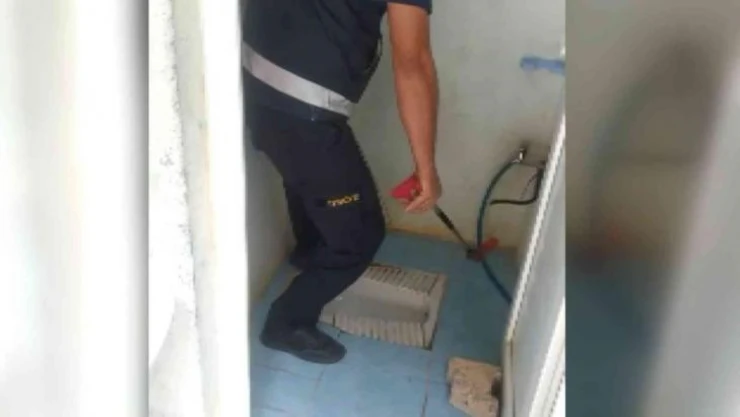 Adıyaman'da bir evin tuvaletinde musluk borusunun geçtiği deliğe giren yılan, itfaiye ekipleri tarafından çıkartıldı.