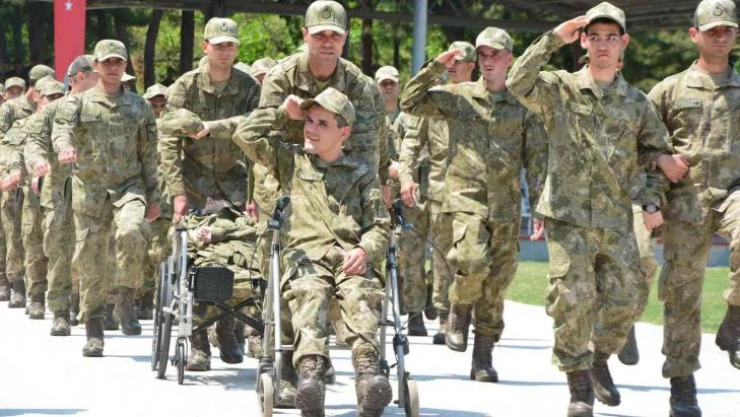 Balıkesir Bakım Mühimmat Okulu ve Eğitim Merkezi Komutanlığı'nda yapılan törenle 38 engelli genç bir günlüğüne askerlik heyecanı yaşadı. Engelli gençler silah ve bayrak üzerine yemin ederek terhis belgesi aldı.