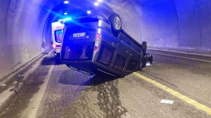 Hafif ticari araç tünelde duvara çarpıp ters döndü: 3'ü çocuk 5 yaralı