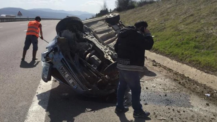 Alınan bilgiye göre, TEM otoyolunda İstanbul istikametine gitmekte olan, Mustafa Sevinç idaresindeki 06 AU 7606 plakalı otomobil, sürücüsünün direksiyon hakimiyetini kaybetmesi sonucu Dağkent mevkisinde bariyerlere çarparak takla attı.
