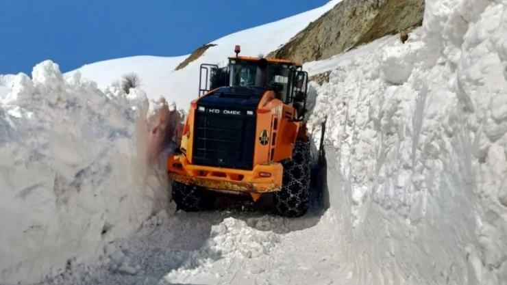 Hakkari'nin Şemdinli ilçesinde mart ayına rağmen yüksek rakımlı bölgelerde karla mücadele çalışması yoğun şekilde devam ediyor.