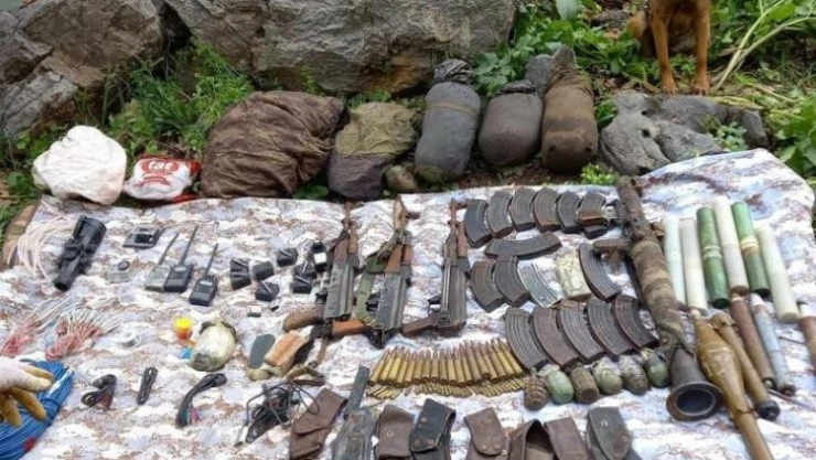 Siirt İl Jandarma Komutanlığı ekipleri, kayalıklar arasında bir bidon içerisinde çok sayıda silah ve mühimmat ele geçirdi.