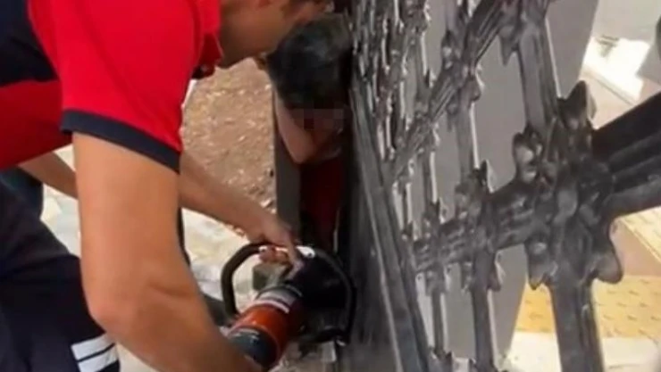 Mersin'de bahçenin sürgülü demir kapısı arasına sıkışan 6 yaşındaki çocuk itfaiye ekipleri tarafından kurtarıldı.