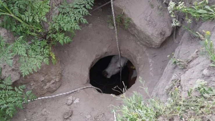 Kayseri'nin Melikgazi ilçesinde sahibinin 2 gündür bulamadığı inek, yapılan aramada definecilerin açtığı kuyuda bulundu.