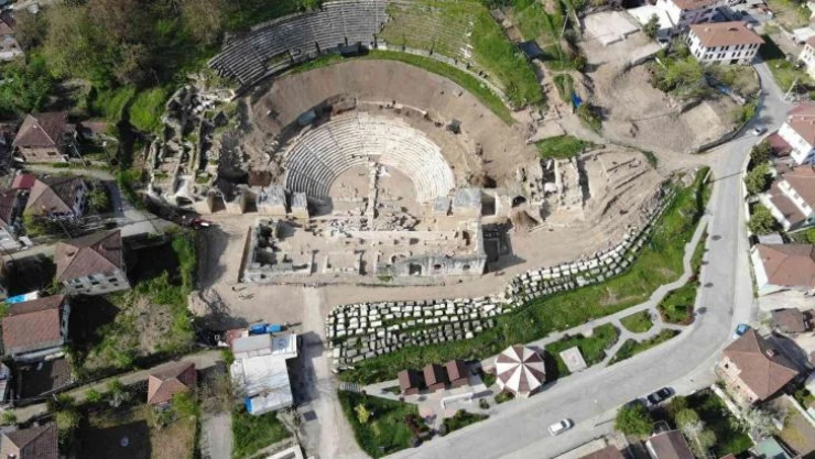 DÜZCE (İHA) – Tarihi, M.Ö. 3'üncü yüzyıla uzanan Prusias Ad Hypium Antik Kenti'nde, toprak altındaki eşsiz mimari arkeologların gayretli çalışmalarıyla gün yüzüne çıkarılıyor. Arkeolog Güldemet Yıldız Dursun, Prusias Ad Hypium Antik Kenti'nin diğer antik kentlerden farklı olduğunu belirterek, Efes'te tiyatroya gider sonra evinize dönersiniz. Ama Konuralp'te tiyatronun karşısındaki evde konakladığınızda Prusias tiyatrosuna bakan bir sabaha uyanmış olursunuz dedi.