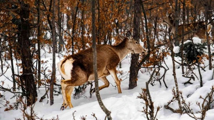 Özellikle kış aylarında kızıl geyiklerin yiyecek bulmakta güçlük çekmemesi için Yozgat Doğa Koruma Milli Parklar Şube Müdürlüğü ekipleri tarafından ormanlık alana yem bırakılıyor.