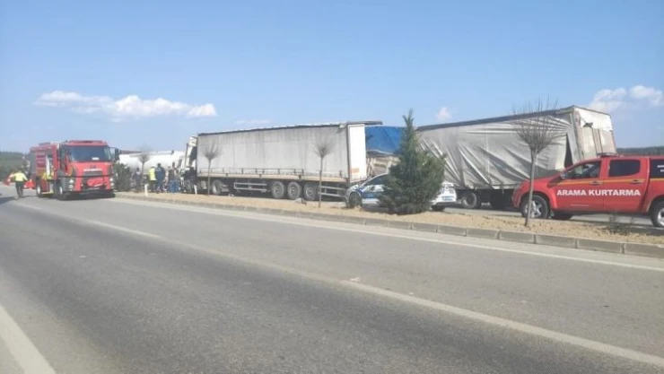 Kaza, Saruhanlı ilçesi Saruhanlı-Akhisar karayolu üzerinde meydana geldi. Edinilen bilgiye göre, Mehmet Ş. (44) idaresindeki 06 FF 1389 plakalı yakıt tankeri, Cezail T. (48) idaresindeki 41 AIP 591 plakalı kamyon ve Şirin G. (48) idaresindeki 34 CPU 039 plakalı tır ile Naci K. (36) idaresindeki 45 AFN 635 plakalı tır zincirleme kaza yaptı. Çevredekilerin haber vermesi üzerine olay yerine 112 Acil Servis ekipleri ile jandarma ve Manisa Büyükşehir Belediyesine bağlı itfaiye ekipleri sevk edildi.