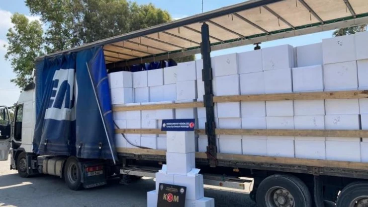 Mersin'in Tarsus ilçesinde bir tırda yapılan aramada 10 milyon boş makaron ele geçirildi.