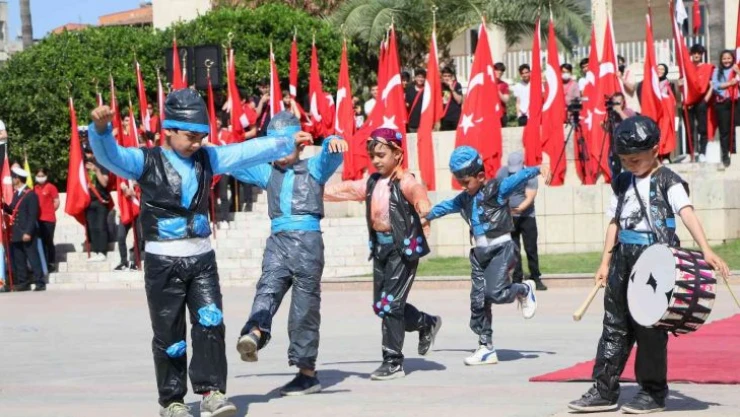 23 Nisan Ulusal Egemenlik ve Çocuk Bayramı ve TBMM’nin kuruluşunun 102’inci yıl dönümü, Mersin’de düzenlenen törenle coşkuyla kutlandı. Rengarenk kıyafetleri, ellerinde Türk bayraklarıyla bayram coşkusu yaşayan çocuklar, sergiledikleri gösterilerle de renkli görüntüler oluşturdu.