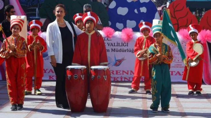 Edirne Valisi Hüseyin Kürşat Kırbıyık, öğrencileri tebrik edip hatıra fotoğrafı çektirdi. Folklor gösterileriyle devam eden etkinlikte kurslarda üretilen eserler de sergilendi.