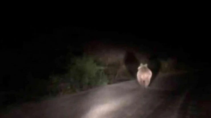 Sivas’ın Gemerek ilçesinde yaşayan iki arkadaş önlerine çıkan ayıyı araçla kovaladı, o anlar cep telefonu kamerasına yansıdı