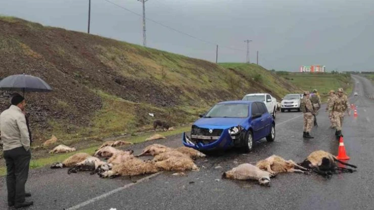 Bingöl'de sürücüsünün kontrolünden çıkan otomobil sürüye çarptı, kazada 20 koyun telef oldu.
