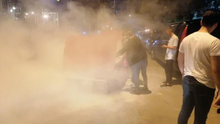 Otomobilinin yandığını fark etmeyen sürücü, vatandaşların uyarısıyla faciadan kurtuldu