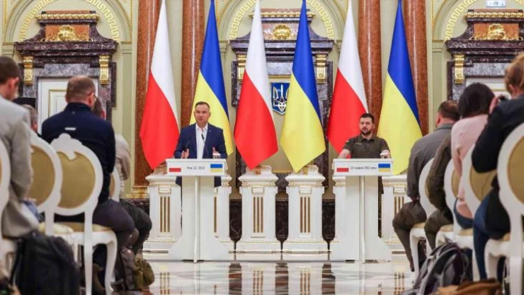 Geçtiğimiz nisan ayında gerçekleştirdiği ziyaretinin ardından yeniden Ukrayna’nın başkenti Kiev’e gelen Polonya Devlet Başkanı Andrzej Duda, Ukrayna parlamentosuna yaptığı hitabının ardından Ukrayna Devlet Başkanı Vladimir Zelenskiy ile ortak basın toplantısı düzenledi.