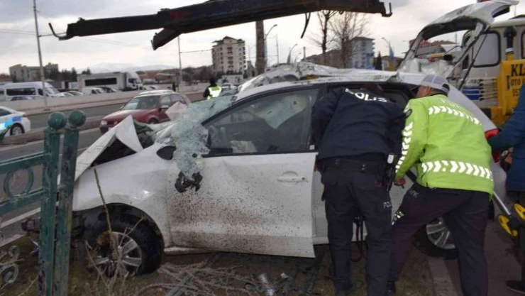 Refüje çarpan otomobil demir korkulukları yerinden söktü: 1'i ağır 3 yaralı
