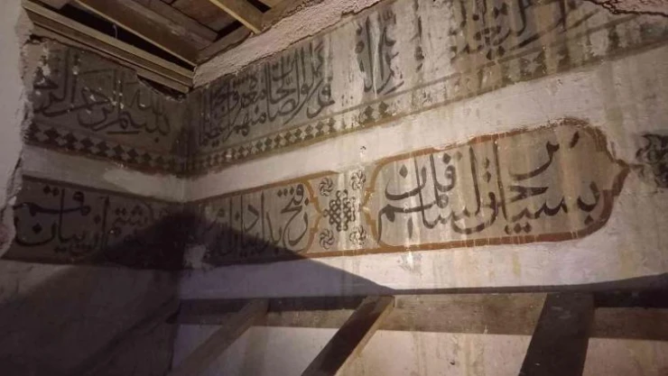 Kastamonu'da Restorasyon çalışmalarının yapıldığı Şeyh Şabanı-ı Veli Camii'nin duvarlarında Fetih Suresi'nin ayetlerinin yazıldığı ortaya çıktı.