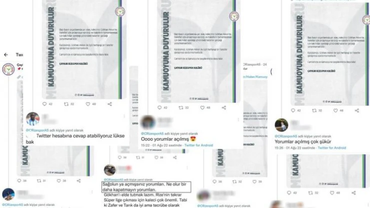 Spor Toto 1. Lig ekiplerinden Çaykur Rizespor’da, kulübün eski başkanı Tahir Kıran ve yönetimi döneminde aldıkları karar ile sosyal medya hesaplarını yoruma kapatmış, bu kararlar ise taraftarlar tarafından tepki ile karşılanmıştı. 20 Haziran 2022’de gerçekleşen kongre ile Kıran yerini İbrahim Turgut’a bıraktı. Yönetiminde de bazı değişiklikler yapan Turgut başkanlığında ki Rizespor’da sosyal medya hesapları uzun bir süreden sonra yeniden yorumlara açıldı. Alınan bu karar ise yeşil-mavili camiayı sevindirdi.