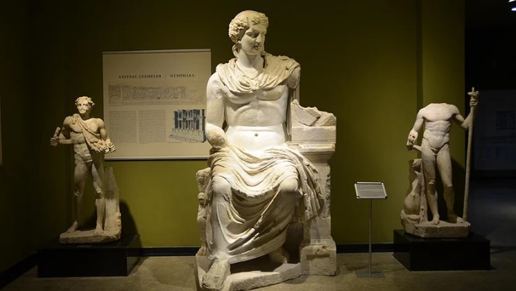 Dans eden kızlar frizlerinin yanı sıra zafer tanrıçası Nike, Dyonisos, Nemesis, Asklepios ve Kronis heykelleri antik kentten çıkarılan eserler arasında yer alıyor.