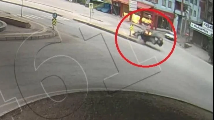 Cumhuriyet Meydanı’nda seyir halindeki bir motosikletli kurye ise yaya geçidinde önüne çıkan yayalara çarpmamak için devriliyor. Başka bir kazada ise yola çıkan hafif ticari araca kamyonet çarpıyor.