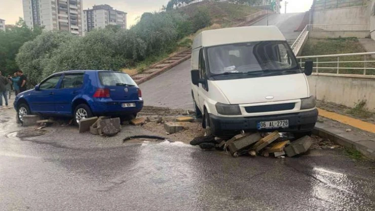Ankara'da sağanak yağış sonrası meydana gelen sel sebebiyle zor anlar yaşayan motosiklet sürücüsü bir aracın tekerine sıkıştı. Motosikletlinin yardımına, çöken yolda sürüklenen araçları aşan vatandaşlar koştu.