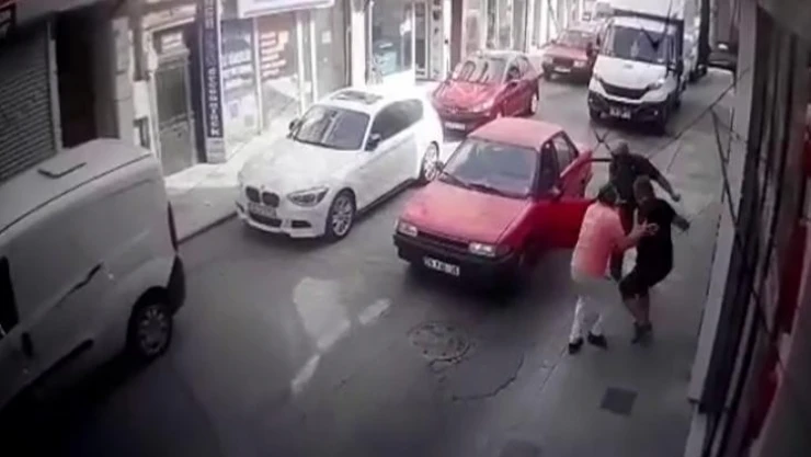 Silivri’de yolda yürüyen baba ve oğlu ile bir sürücü arasında bıçaklı kavga çıktı. Sürücü tarafından bıçaklanan baba ile oğlu yaralı olarak hastaneye kaldırılırken, o anlar saniye saniye kameraya yansıdı.