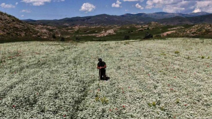 Bölge sakinlerinden Kadir Aslan, bu yıl bol yağışlar nedeniyle çiçeğin de bol olduğunu belirterek, “Normalde bu çiçek, kesilen ekin tarlalarında yani tohumun çıkmadığı tarlalarda daha çok oluyor. Bu yıl yağmur güzel yağdı ve buna paralel olarak böyle görüntüler ortaya çıktı. Kar beyazı çiçeklerin arasındaki gelincik çiçekleri muhteşem bir görüntü oluşturdu. Kar yağmış, dolu yağmış gibi bembeyaz çok güzel bir görüntü ortaya çıktı” şeklinde konuştu.