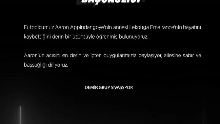 Kırmızı-beyazlı kulüpten yapılan açıklamada, "Futbolcumuz Aaron Appindangoye’nin annesi Lekouga Emairance’nin hayatını kaybettiğini derin bir üzüntüyle öğrenmiş bulunuyoruz. Aaron’nun acısını en derin ve içten duygularımızla paylaşıyor, ailesine sabır ve başsağlığı diliyoruz” ifadeleri kullanıldı.