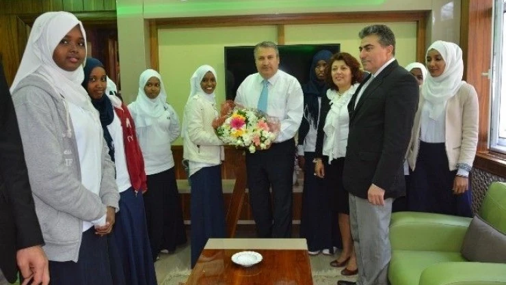 Somali’den gelmiş şekilde Manisa Anadolu Sağlık Meslek Lisesi’nde terbiye meydan Somalili öğrenciler Manisa Anadolu Sağlık Meslek Lisesi Müdürü Meryem İlkay Karaman ve öğretmenler ile bu arada Yunusemre Belediye Başkanı Dr. Mehmet Çerçi’yi makamında görüşme etti.