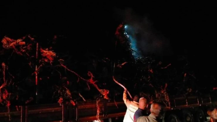 Balıkesir-Susurluk yolunda seyir halindeki tırın dorsesi alev aldı. Yangın sonrası dorse hurdaya döndü.