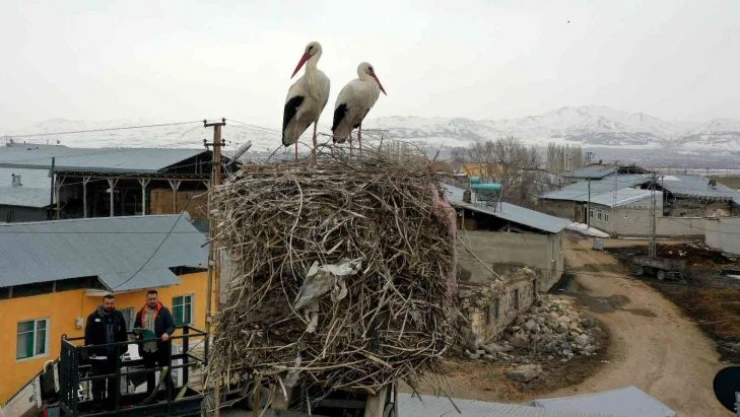 Erzurum'un Yakutiye ilçesine bağlı Ortadüzü köyünde bir eve ait tandır bacası leyleklere yuva oldu. Tandır bacasının tehlikeli yer olmasından dolayı ekipler leyleklerin yuvasını taşımak için harekete geçti.