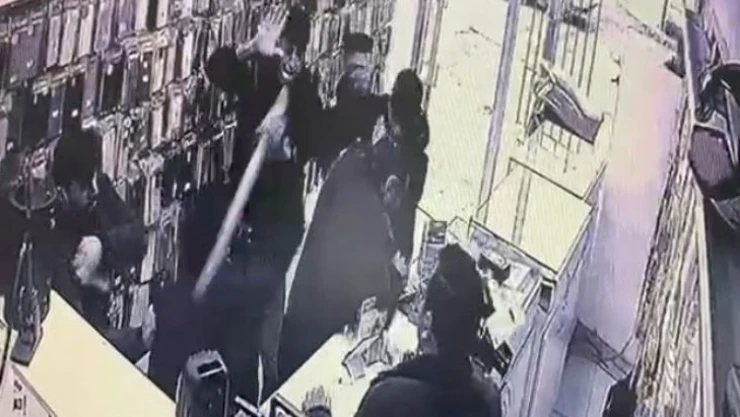 Telefon dükkanında sopa ve sandalyelerin havada uçuştuğu kavga kamerada