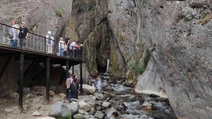 İsmini duydukları şelaleyi ziyarete geldiklerini ifade eden turistler, "Şelaleye hayran kaldık. Harika bir doğası var, suyu buz gibi. Sıcak günlerde insanı serinletiyor. Suyu da bol akıyor. Burada çok sayıda turist var. Özellikle Arap turistler yoğunlukta. Her yıl gelmeyi düşünüyoruz" dedi.
