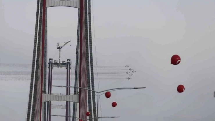 18 Mart Şehitleri Anma ve Çanakkale Deniz Zaferi'nin 107'ncı yıl dönümü sonrası açılışı gerçekleştirilen 1915 Çanakkale Köprüsü üzerinde gösteri yapan Türk Yıldızları nefes kesti.
