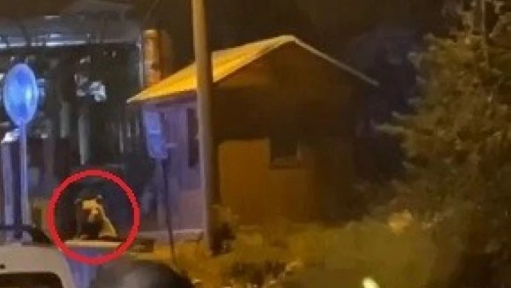 Aç kalan ayılar Sarıalan’da orman köşklerinin bulunduğu alana inerek çöp kovalarında yemek aradı. Tatil yapmak için Uludağ’a gelen günübirlikçilerin, ayıları karşılarında gördüklerinde yaşadıkları panik ve şaşkınlık kameralara yansıdı.