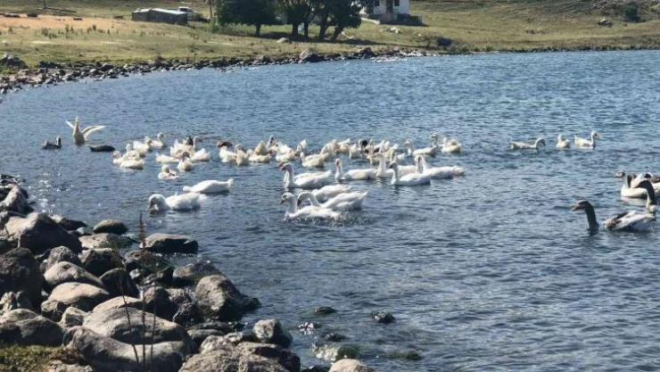 Ardahan'ın Çıldır ilçesinde bulunan Güvenocak köyü yaylasına yazları giden herkes geçimini kazdan sağlıyor.