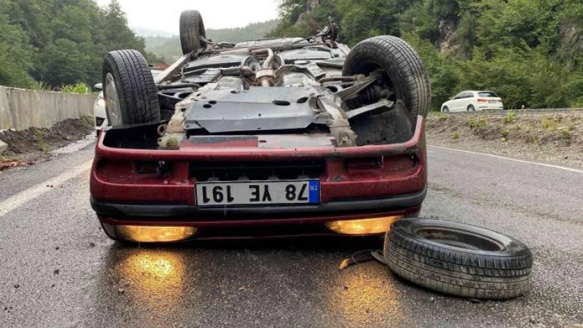 Zonguldak-Ankara karayolunda kontrolden çıkan otomobil karşı şeride geçip taklalar atarak ters döndü. Kazada 2 kişi yaralandı.